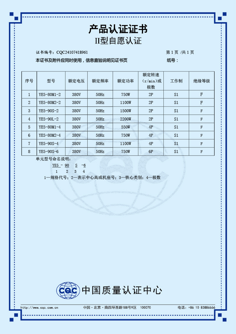II型自愿認(rèn)證產(chǎn)品認(rèn)證證書(shū)-YE5